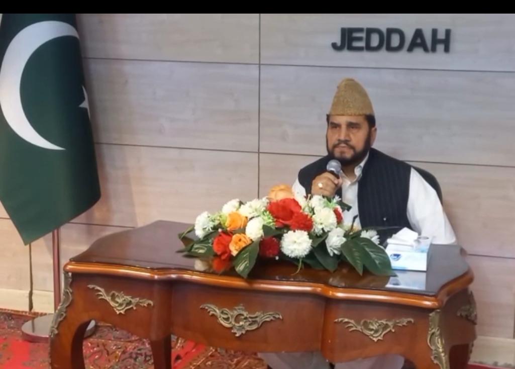 Jeddah  – A significant community gathering was held at the Pakistan Consulate in Jeddah, where renowned Qari Syed Sadaqat Ali delivered an inspiring keynote address on the theme “Qur’an and Paigham-e-Pakistan.” The event was attended by a large number of community members.