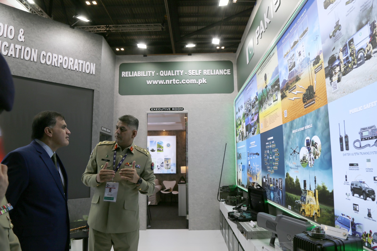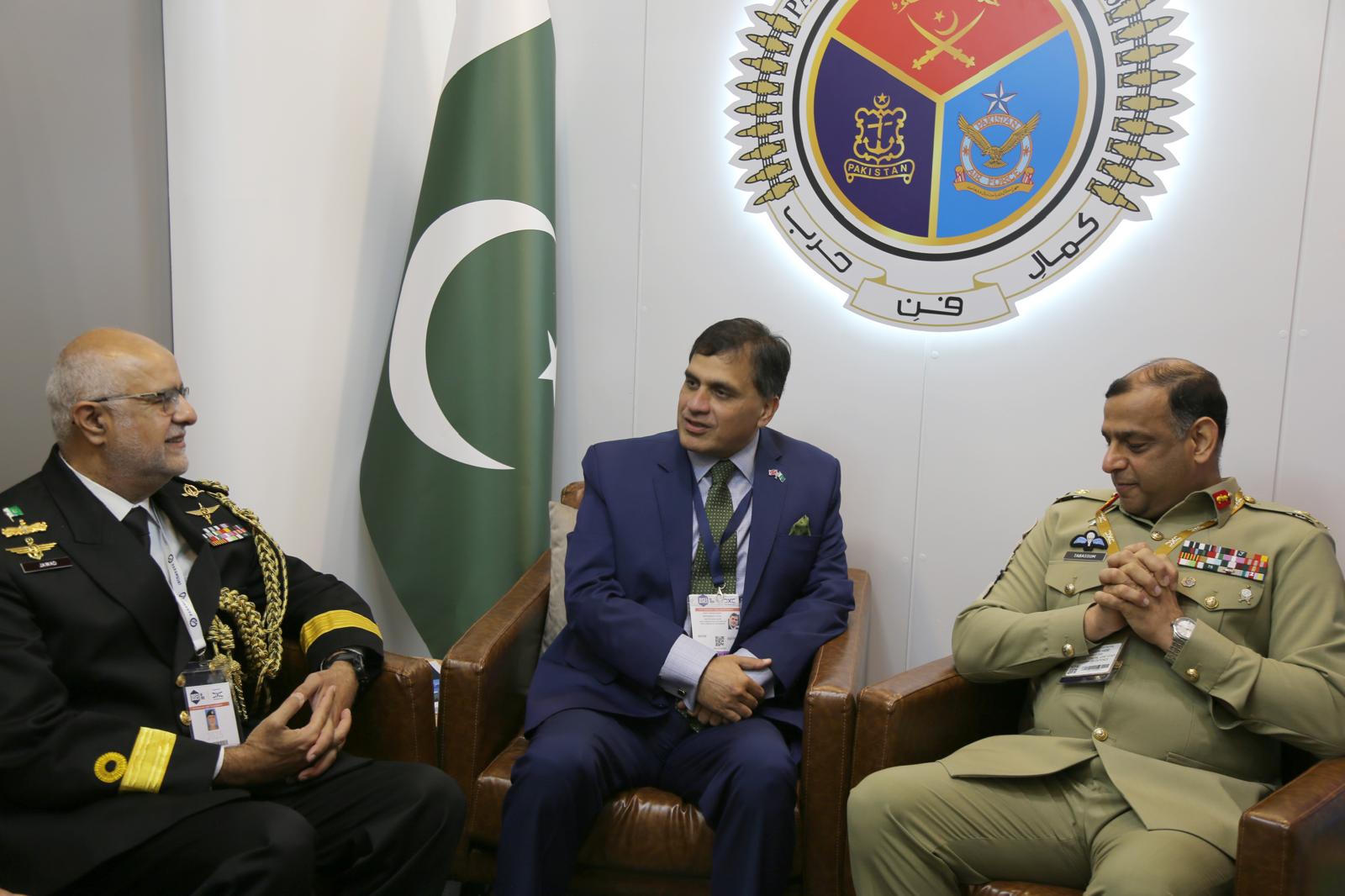During his visit, Dr. Faisal toured various stalls and met with representatives of Pakistan’s defence industries. He was accompanied by the Director General Joint Staff and the Director General Defence Export Promotion Organization (DEPO).