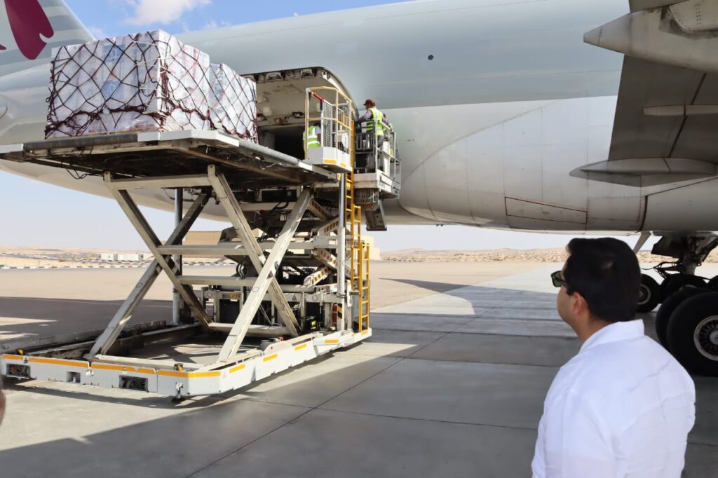 A special chartered aircraft from Pakistan carrying 100 tonnes of humanitarian and relief supplies landed at El-Arish International Airport, Egypt this afternoon.