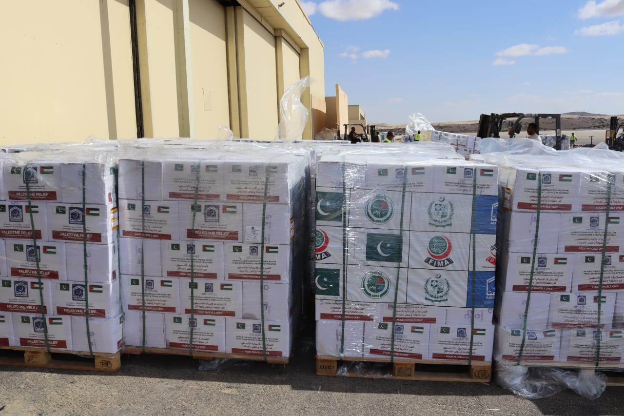 Officials from the Embassy of Pakistan, Cairo received the consignment and formally handed it over to the Egyptian Red Crescent Society for onward transportation to the residents of Gaza.