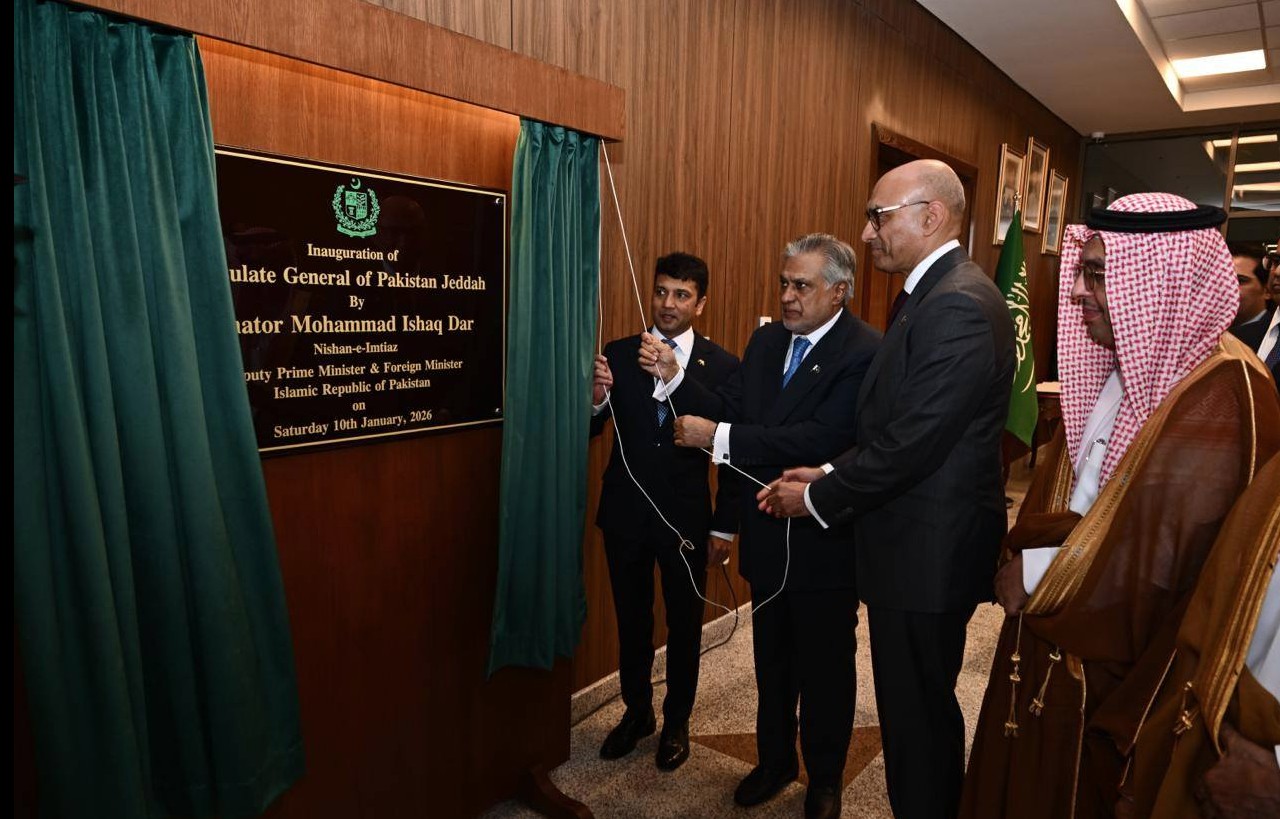 افتتح نائب رئيس الوزراء ووزير خارجية باكستان، السيناتور محمد إسحاق دار، اليوم مبنى الديوان (الشانسلري) الجديد للقنصلية العامة لباكستان في جدة بشكل رسمي. وقد حضر حفل الافتتاح سفير باكستان أحمد فاروق، والقنصل العام في جدة السيد سيد مصطفى رباني، إلى جانب عدد من الشخصيات السعودية البارزة وأفراد الجالية الباكستانية ومسؤولي القنصلية.