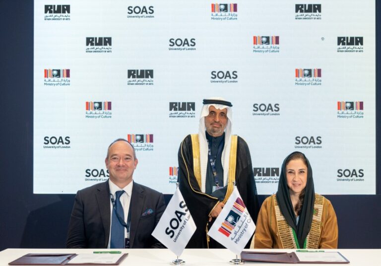 سعودی وزارتِ ثقافت نے آج SOAS یونیورسٹی آف لندن کے ساتھ ریاض یونیورسٹی آف آرٹس کی کالج آف ہیریٹیج اینڈ سیولائزیشن اسٹڈیز کے لیے شراکت کا معاہدہ کیا ہے، جس کا مقصد تخلیقی ترقی کو مزید مضبوط بنانا اور ثقافتی تنوع کو علمی و ثقافتی تبادلے کے ذریعے فروغ دینا ہے۔