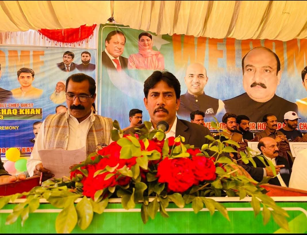 تقریب کے مہمان خصوصی پاکستان مسلم لیگ (ن) کے رہنما رانا محمد اسحاق خان اور رانا احسن اسحاق خان۔ تقریب کی میزبانی ایجوکیشن افسر ملزم ندیم احمد ہاشمی نے کہا